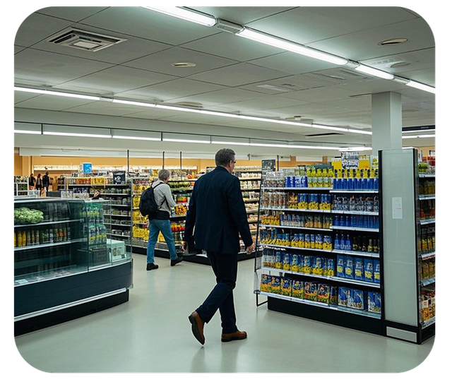 في متاجر الملابس، يتم تسليط الأضواء بدقة على العارضات ومنصات العرض، لتسليط الضوء على تفاصيل اللون والمواد والنمط الخاصة بالملابس؛ في متجر المجوهرات، تستخدم الأضواء الكاشفة سطوعًا عاليًا وضوءًا مركزًا لجعل المجوهرات أكثر إبهارًا وجذب انتباه العملاء.