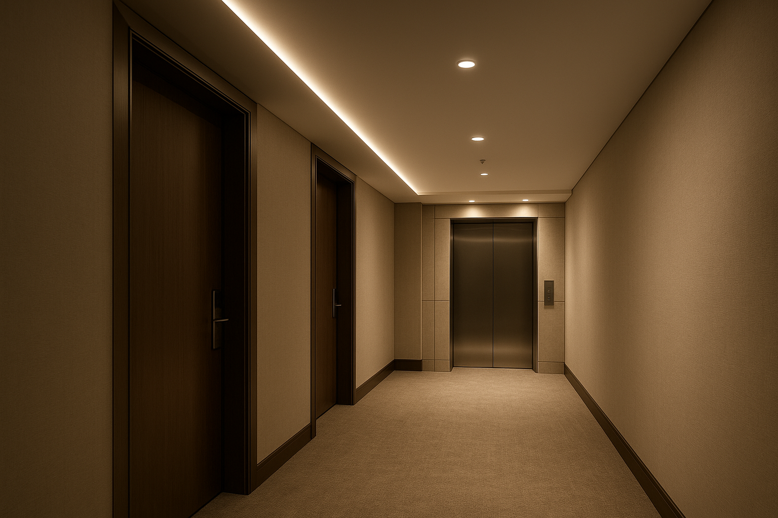 Circulation lighting should feel calm and never patchy. Continuous linears or well‑spaced recessed downlights provide even guidance, and sensors reduce energy without sacrificing safety.