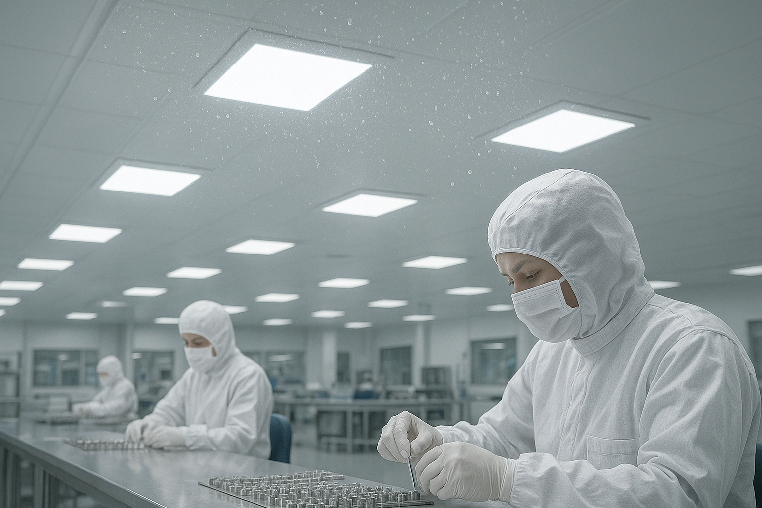 Select higher‑efficacy LED panel lights for light manufacturing or clean zones where a flat, uniform ceiling plane is desired. Typical ranges are 300–750 lux (more for detailed assembly), UGR ≤ 22–25, CRI ≥ 80, CCT 4000–5000 K. For dusty or humid areas, go IP65+ and ensure robust thermal paths.