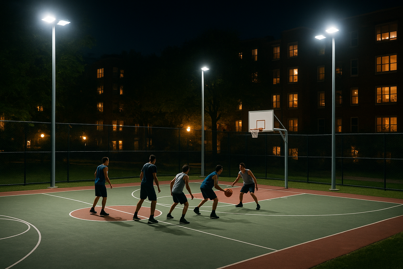 Sports | High-output floods | 25–40 ft | Tight beams, shields | 4000–5000K | Motion + scenes | IP66, IK08+ | Often >$589+/set (2026-02-06) |