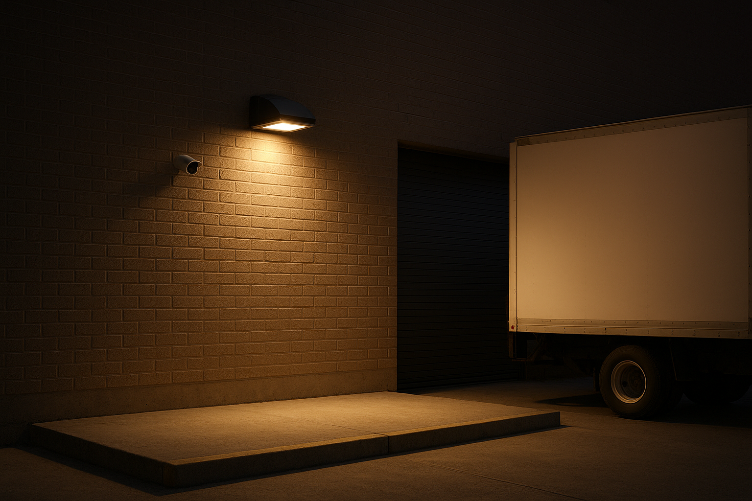 Fixtures: full-cutoff wall packs or shielded floods with vandal-resistant housings. Mounting: 8–14 ft. Light quality: 3000–4000K; IP65 and IK08+.