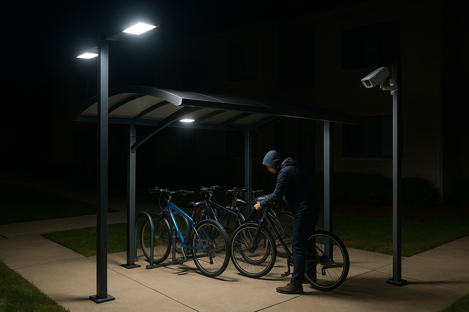 ▍ Purpose: Localized, low-glare illumination that improves perceived safety and camera clarity at racks and shelters.