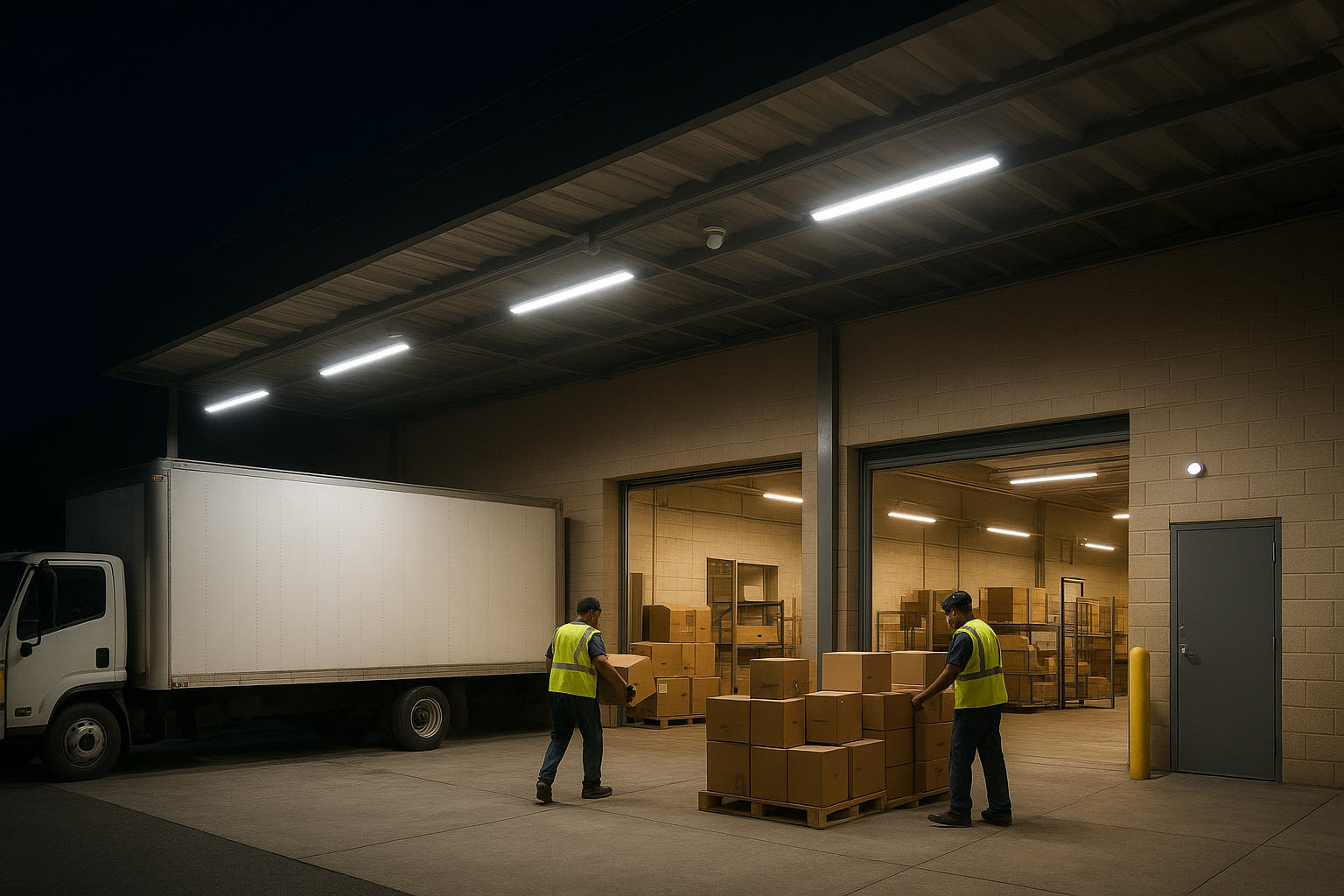 Loading/receiving | IP65+ linear/wrap with sensors | 4000–5000K | Photocell + motion; uniformity for safety |