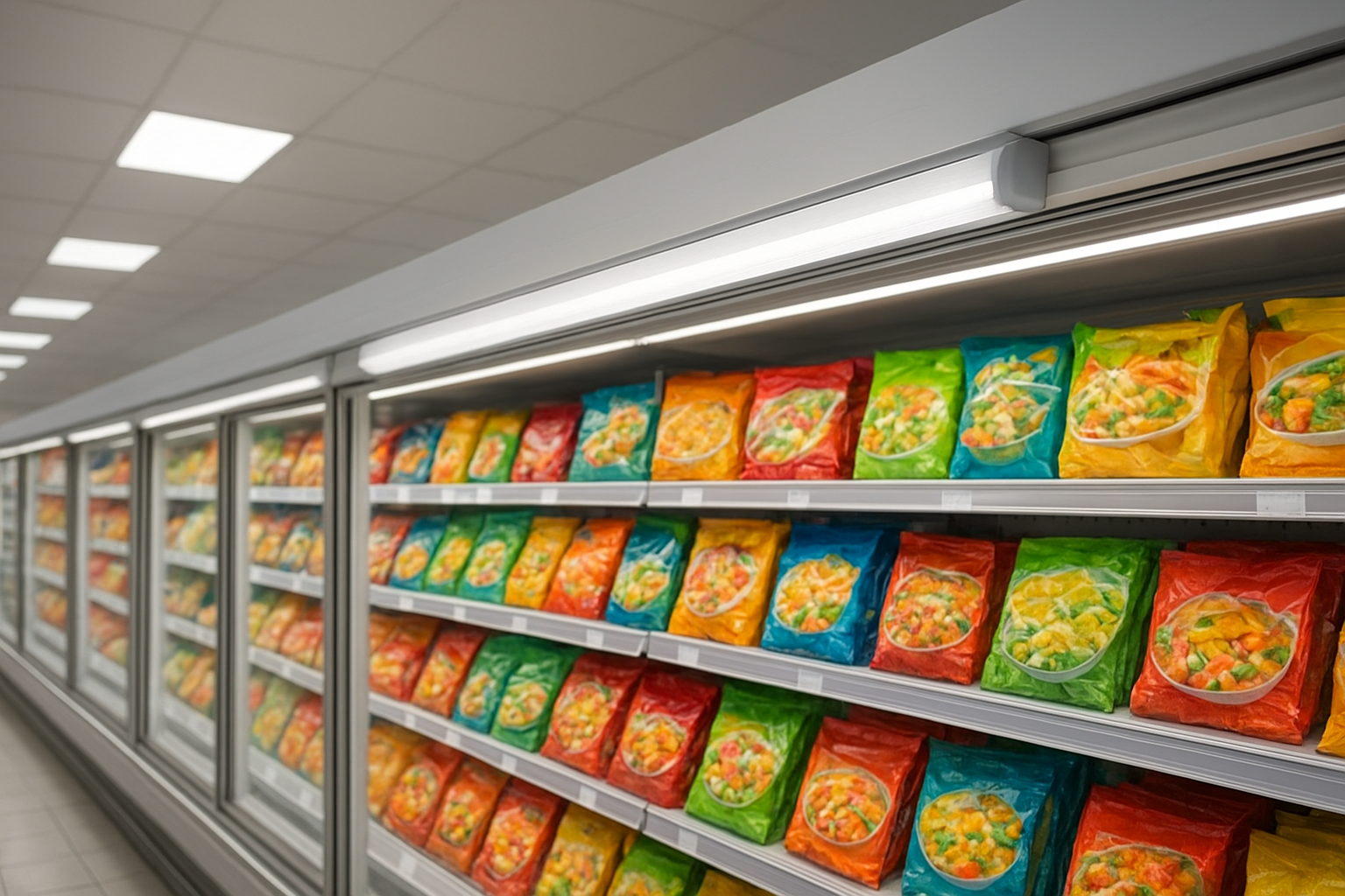 Practical notes: 4000–5000K looks clean and crisp; typical merchandising levels around 40–60 fc. Check NSF/ANSI suitability for food environments and ensure anti-condensation design on lenses.